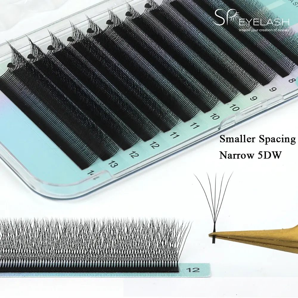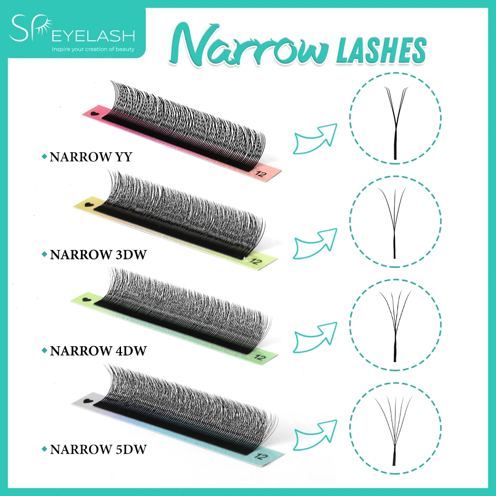 SP Eyelash har alltid varit engagerade i att tillhandahålla innovativa lösningar för fransindustrin. Smala 5DW-fransar är gjorda av exklusivt utvecklat ultramjukt material, med en struktur nära naturliga fransar. De erbjuder en mängd olika längder från 8-15 mm och olika curlgrader (C/D), som inte bara kan tillgodose de naturliga behoven hos dagliga smink utan också skapa fantastiska effekter för viktiga tillfällen. De är det ideala valet för professionella fransartister och skönhetsälskande kvinnor.