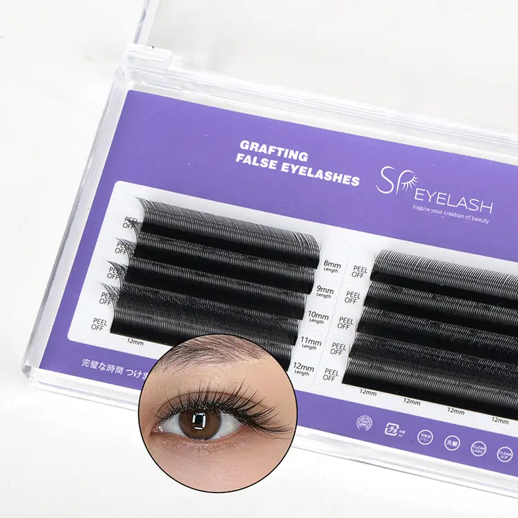 SP Eyelash Slant Flying YY Eyelash -tekniken antar en platt rotmanuell ympningsprocess, varvid varje ögonfransrot är platt och fri från limmärken. Värmeinställningstekniken kan upprätthålla Curl-graden i 4-6 veckor och har utmärkt vattentät och svettbeständig prestanda. Prefabricerad blommande design eliminerar manuella klustersteg, vilket sparar nästan hälften av tiden jämfört med traditionella operationer, och till och med nybörjare kan enkelt slutföra ympning på professionell nivå. Den noggrant utvecklade tvärvävstekniken skapar en naturlig gradienteffekt, med ett enda ögonfranslager endast 0,1 g, vilket gör det enkelt att bära utan någon börda.