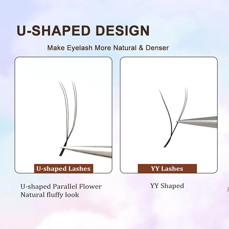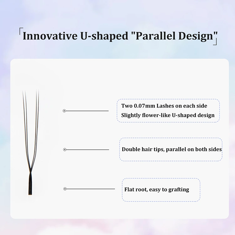 Den U-formade dubbla spetsiga designen ökar vidhäftande kontaktpunkter, förbättrar fasthet och hållbarhet och har fler fördelar jämfört med traditionella Y-formade ögonfransar.